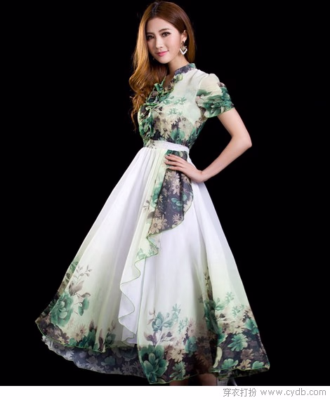 01 每个女人都应该为自己选一件长裙。它是温婉的,小小的圆领配上内敛的荷叶边,在一片墨绿的印花中收出漂亮的腰线,然而一大片雪纺突然覆盖下来,那纯粹而鲜亮的白色就有了一种巨大的气势,缠绵着开上裙角的花枝,都战战兢兢起来。
