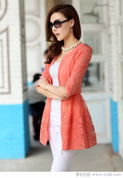07 小西装似乎和防晒扯不上什么关系,但是假如是整个后背和衣袖都是蕾丝拼接的小西装呢?总有一些设计让我们意想不到,棉麻的舒适透气加上蕾丝的镂空,清凉自不必说,也让防晒多一层魅力。