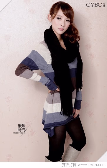 07 小圆领的设计恰到好处地露出一部分肩颈皮肤,既衬得脸型小了一圈,又不会过度性感。宽条纹的设计很好地隐藏了身上的赘肉,配色淡雅不腻人,略长的衣身,配以不规则的下摆,若隐若现间让双腿赢得更多视线。