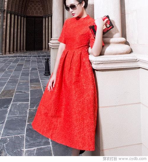 04 立领与收腰大摆,典雅得稍显严谨,似乎再不能随意嘻笑怒骂,是不是你也有了小小忧虑,原来做名媛也没想像中那么简单,但高腰长摆红底花纹盘错,生动不怕色单调,端庄婉然矜贵非凡足够让人欲罢不能。