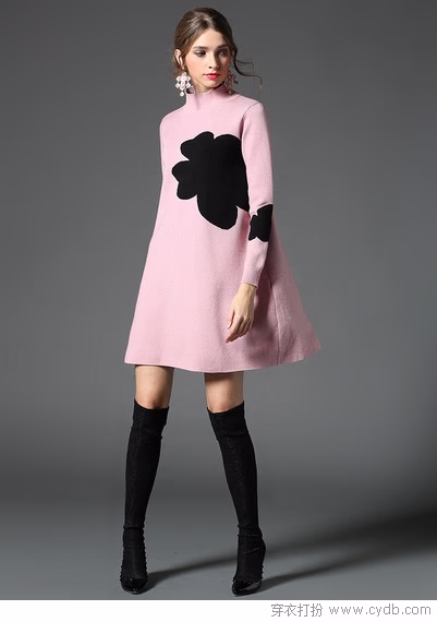 06 当粉红色任性起来,黑色也拿它没有办法,只好乖乖的匍匐成花朵的模样,好让色彩不至于太俗。羊毛连衣裙的高贵因为版型夸张而形成了不一样的气质卓越,大牌感立竿见影。