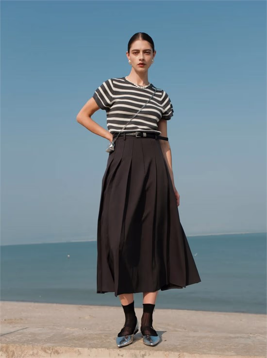 当季节的轮转与时尚的脉搏相遇,inVIVIS新品应运而生。这一季,品牌特别注重了服装的舒适性与时尚感,为你带来经典不过时的黑白条纹T恤。它随性而简洁大方,仿佛为你量身定制的时尚利器,轻松应对各种场合。圆领的设计简洁大方,与休闲的T恤版型映衬,展现你的坦然自若。
