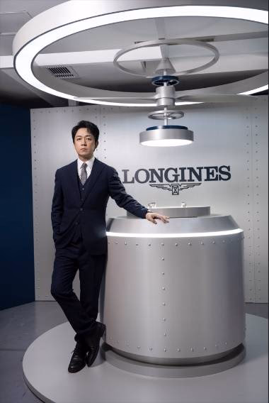 浪琴表全球销售副总裁YannickJenni与中国区销售总监解琦,携手演员潘粤明、袁弘、李昀锐、于适共同揭幕全新飞返计时腕表