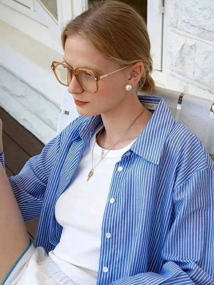 穿上冰河蓝,仿佛置身于宁静的大海冰川之中,让人感受清凉、闲适、平静。同时,蓝色自带的冷静、沉稳的智性感,让你轻松打造春夏知识分子风。