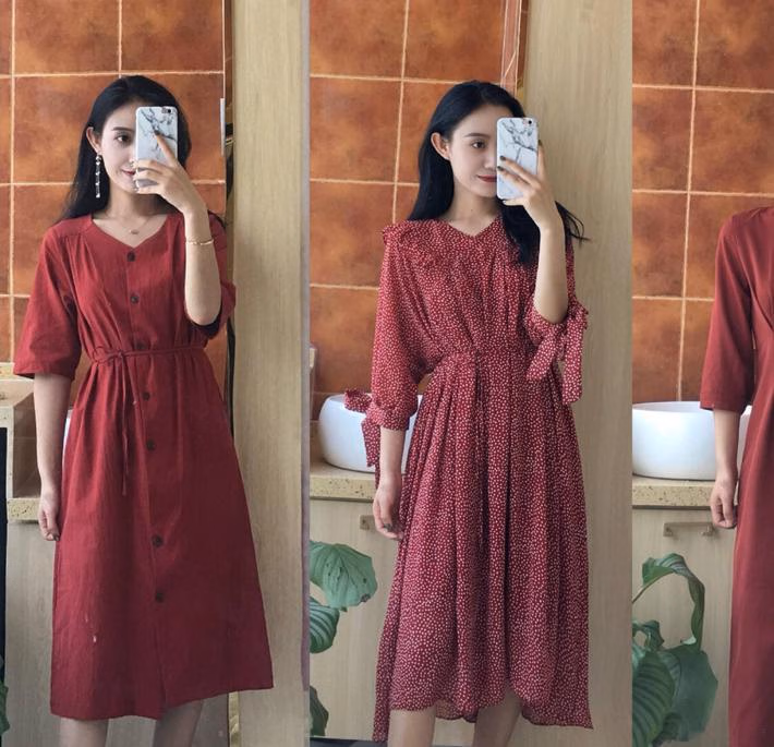 暗红色长裙,轻松穿出时髦,让人更显青春靓丽,同时,暗色调给人带来了一种成熟稳重的气质,收腹的设计让人显得很瘦很精致,凸显轻熟女人的优雅与雅致。