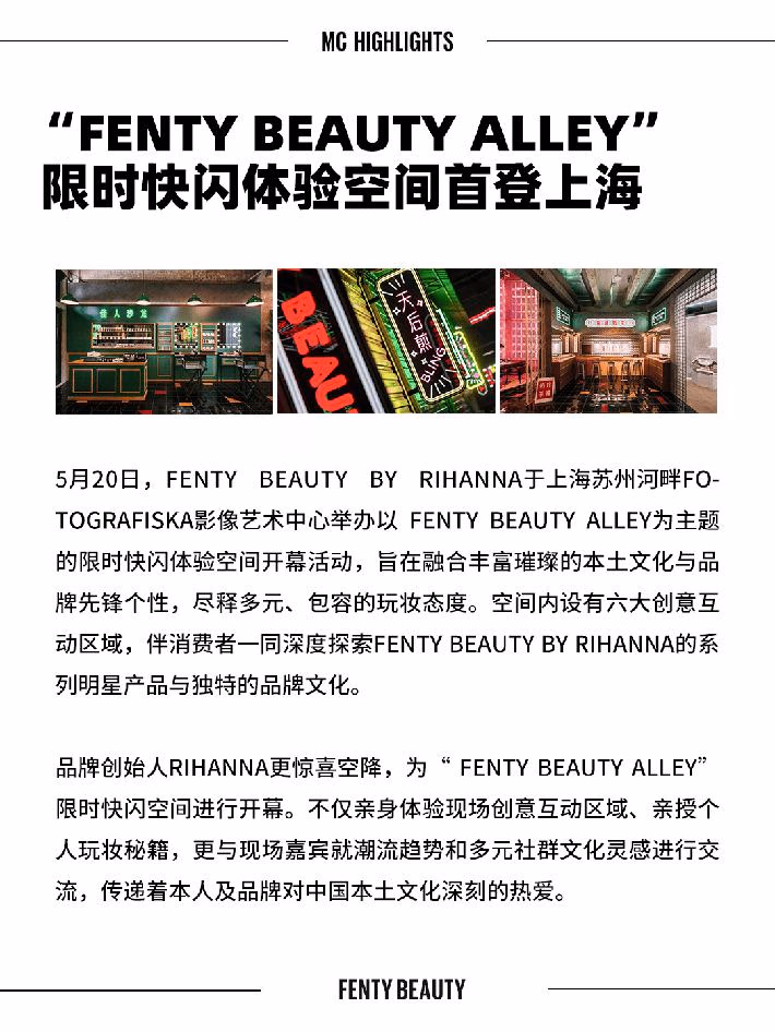 “FENTY BEAUTY ALLEY”限时快闪体验空间首登上海