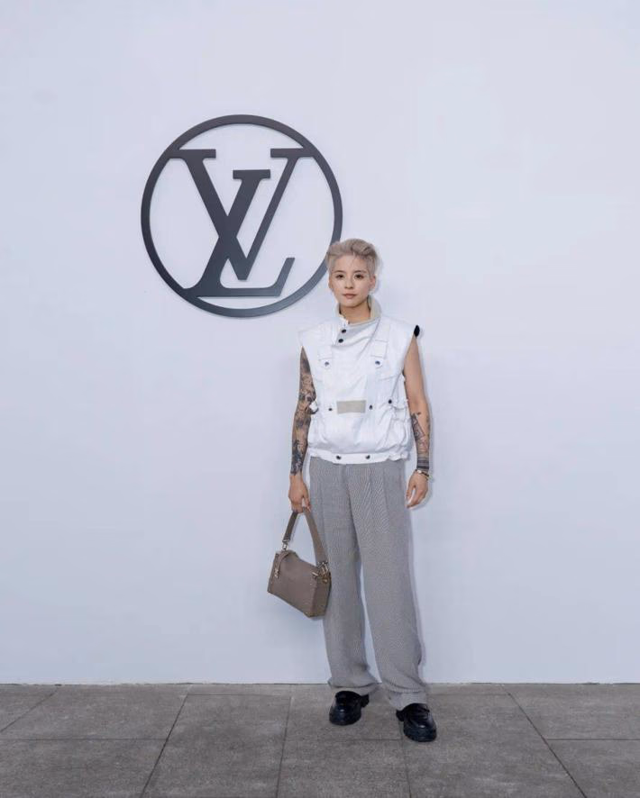 我当天穿了LV的双排扣衬衫连衣裙,军装风的设计与立体版型,搭配Petite Malle硬箱,衬托出力量感。