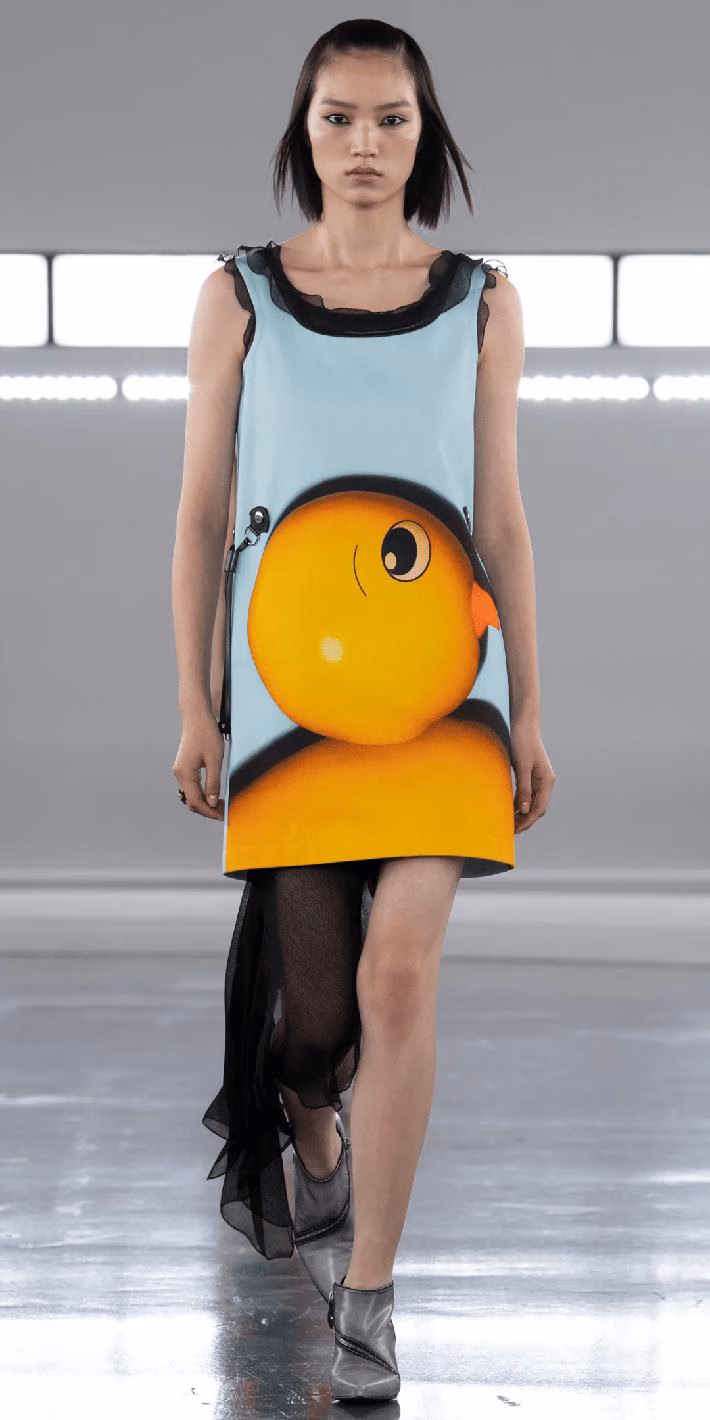 本季最吸睛的莫过于印花了。和艺术家孙一钿合作的图案,让衣服瞬间变得妙趣横生,从大黄鸭、企鹅、花豹、粉红兔到斑点狗,醒目印花+鲜明色彩,满满的多巴胺。