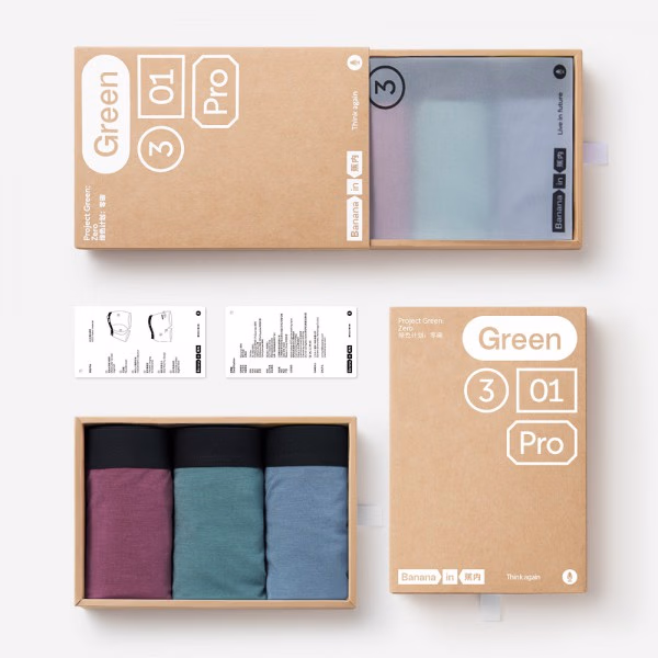 这次蕉内要往经典款301p内裤上“加点绿”。2022年,蕉内「绿色计划」携手兰精集团天丝™品牌,运用零碳天丝™纤维新材料,推出一款全新的产品——蕉内301p零碳莫代尔内裤。
