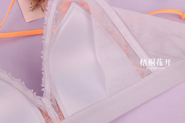 三角杯内侧拼接通透网纱,帮助提升胸部曲线,轻薄舒适无压力,又不会显得过于累赘。