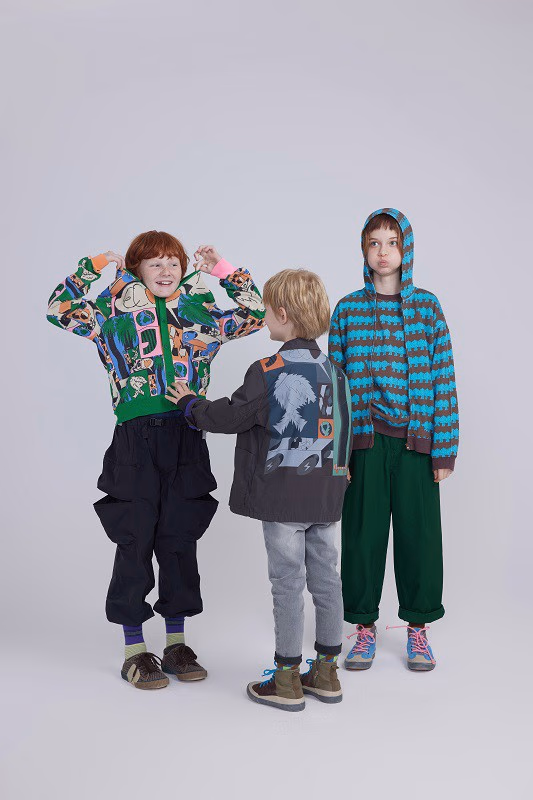 蓬马以毛怪为故事主角,采用漫画手法,将毛怪的奇妙探险记录在了孩子们充满个性的衣服,活力的配色搭载童趣十足的“故事风”印花图形,打破漫画的次元壁。