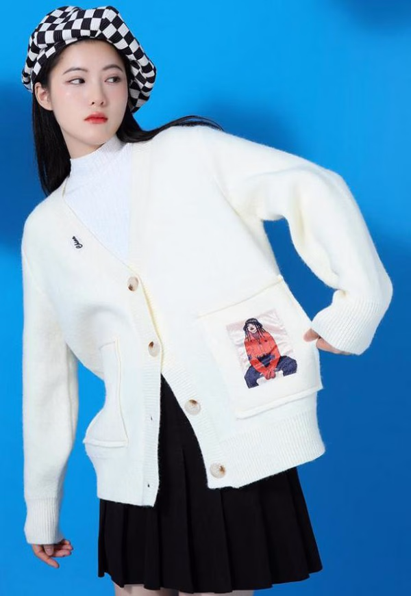 约会,逛街、见朋友该怎么毛衣搭配呢?那就选少女落肩毛衣,v领剪裁,可搭配项链装饰物,凸显少女独有魅力,双口袋带卡通图案,满满少女心爆表,一字单排扣,温柔不失典雅,可以的话,再带上黑色百褶裙、小皮鞋,给人感觉就是邻家女孩初长成,太会打扮了,是个有想法的少女,值得入手一试。