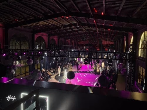 本次走秀代入了更多年轻人自由不羁的态度,服装上以黑色为大基调,代表着反叛的乌托邦美学,冷淡简约的银色及灰色点缀营造极简未来感,黑夜中的秀场如同午夜月光下的大海一般平静,T台上的黑色轨迹便是海面下的暗流涌动,交错漂浮的水母灯,黑暗中溢彩发光,形成一个光影变幻的秩序空间。一时间,设计与科技,虚幻与现实聚焦在秀场的T台上。