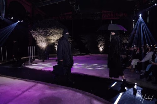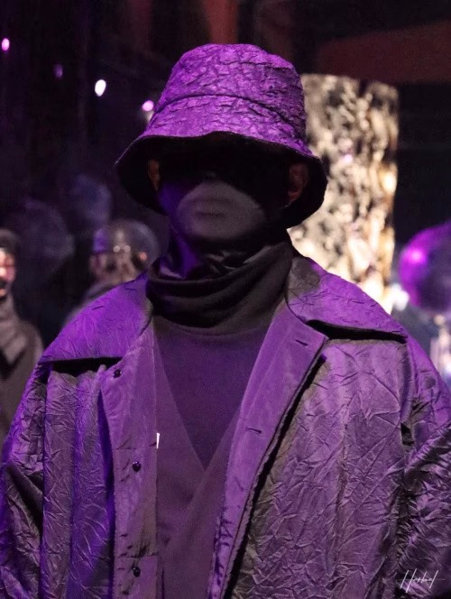 秀场里,“反乌托邦美学”主题下的无月之夜,预示未知。他们带上面具,以无声的语言交流,激发着我们的视觉,使我们对这眼前的“艺术品”充满新奇,愉悦感也油然而生,有了发自内心的灵魂感动。