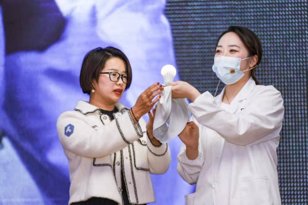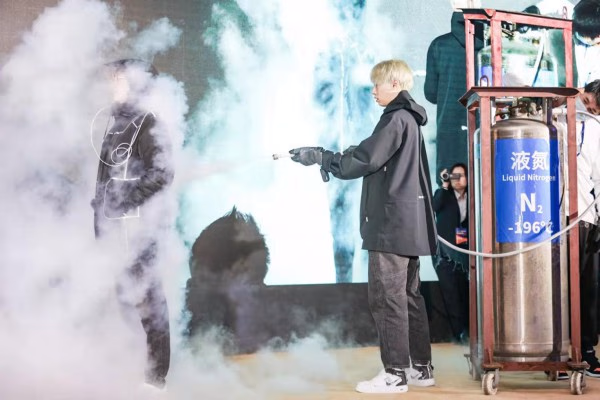 参加者更是在现场直击震撼性的“黑科技”实验,肉眼可见的显性科技呈现在大众面前,并上台测试体验,亲身感受不可思议的“未来服装科技”。