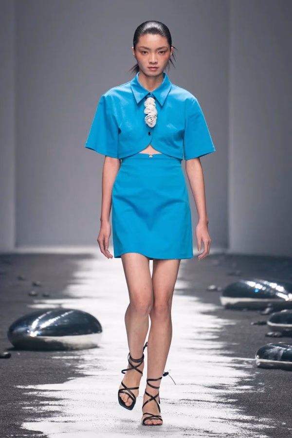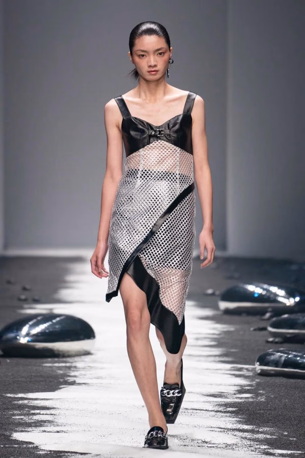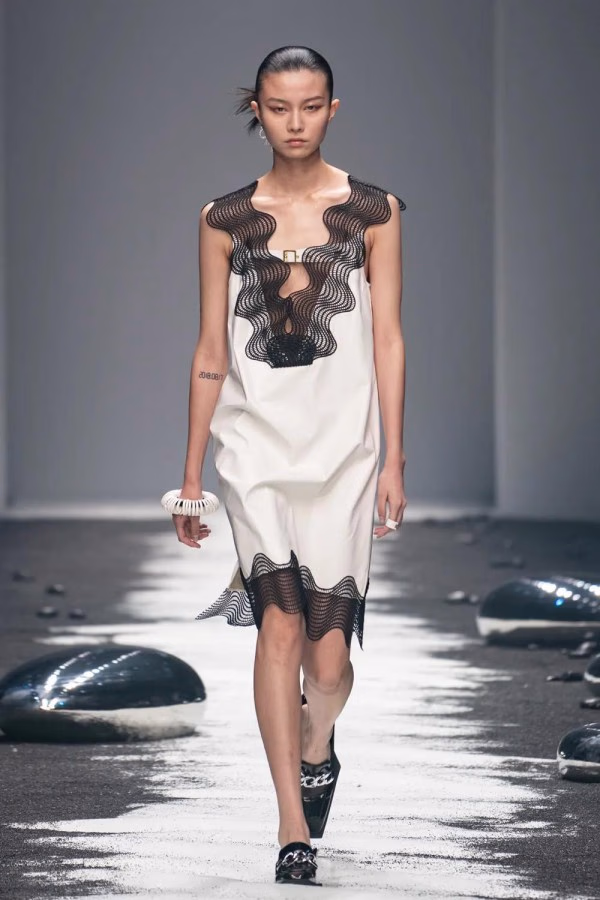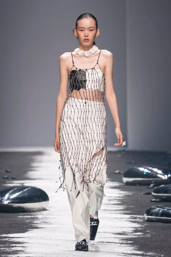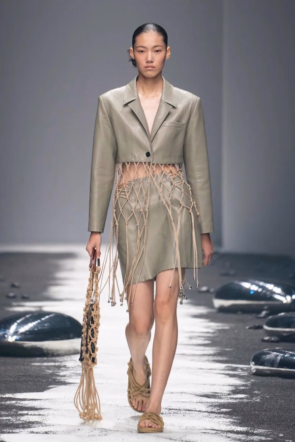 A:除了衣服细节外,秀场的布置,运用了黑色沙滩,代表环保的概念,也值得期待。