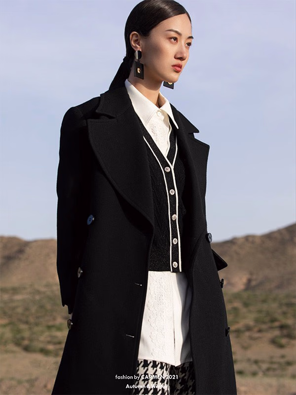 最后一款我们来说说黑色的大衣吧!黑色的大衣给人的感觉是非常飒的,女生穿就是一个字“帅”想要打扮的酷大衣一定要入手,最显瘦的款式一定是黑色,白色衬衫加上黑色背心打底一款黑色大衣披肩气场十足!