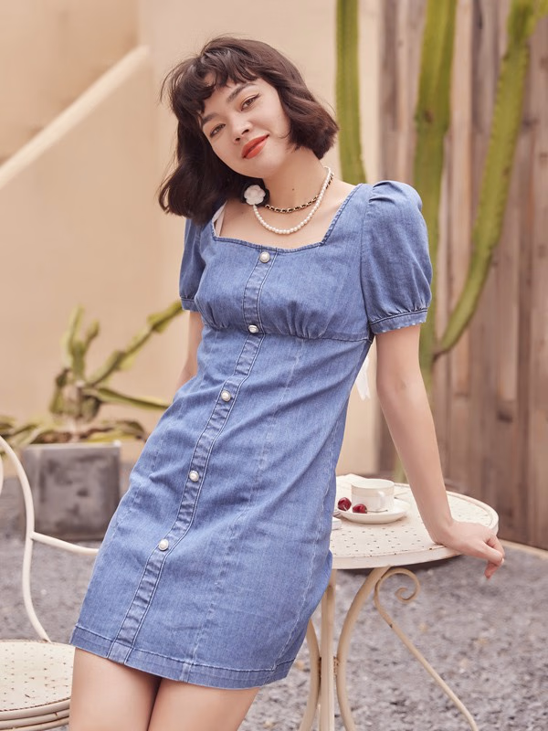 洋溢着青春气息的牛仔连衣裙,让你每时每刻都显得很少女。修身的版型,突显身材绝绝子!