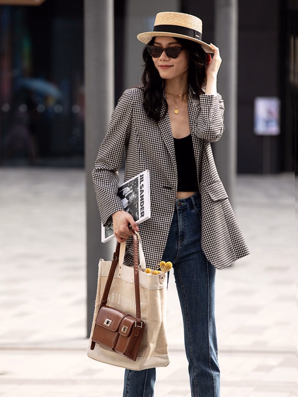 经典的格子元素,耐看舒适,而且百搭!像西装这类常穿的单品,买来绝对是不亏的。这件格子西装,上班穿会显得比较的轻松。日常穿出去也很温柔大气。春秋当做外套都很好看,内衬搭配可以自由发挥。裤子搭配牛仔裤,绝对yyds!格子元素单品穿上你就是时髦精!