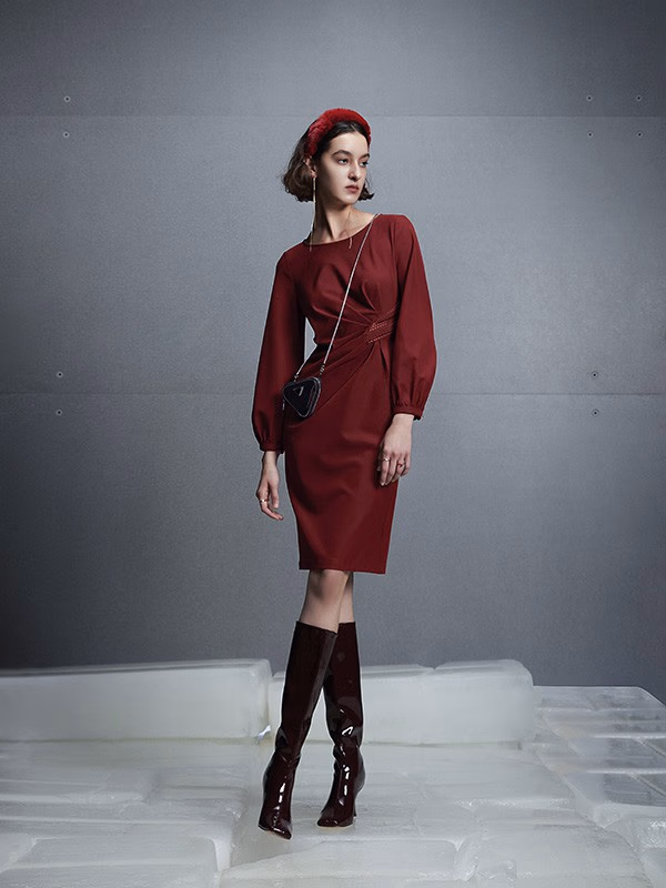 酒红色是秋冬专属颜色,穿起来特别漂亮。高级又大方剪裁,足以体现你的穿着品味。简约不失设计的一件连衣裙,搭配起来有着多种可能。