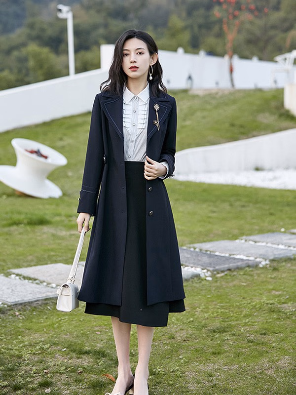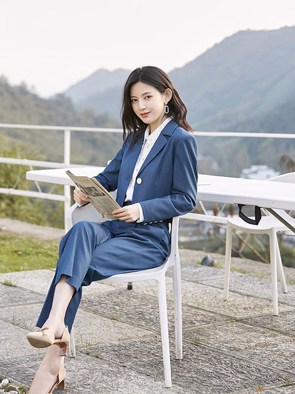 蓝色的西装套装相信很多女生都非常喜欢,今年也是非常流行蓝色的服装单品,这款蓝色的西装外套在版型上就非常的惹人喜爱了,略宽松的西装裤对于腿部线条不是很完美的妹纸们来说简直是福音!内搭可以选择蕾丝或者带有纹路的白色衬衫哦!