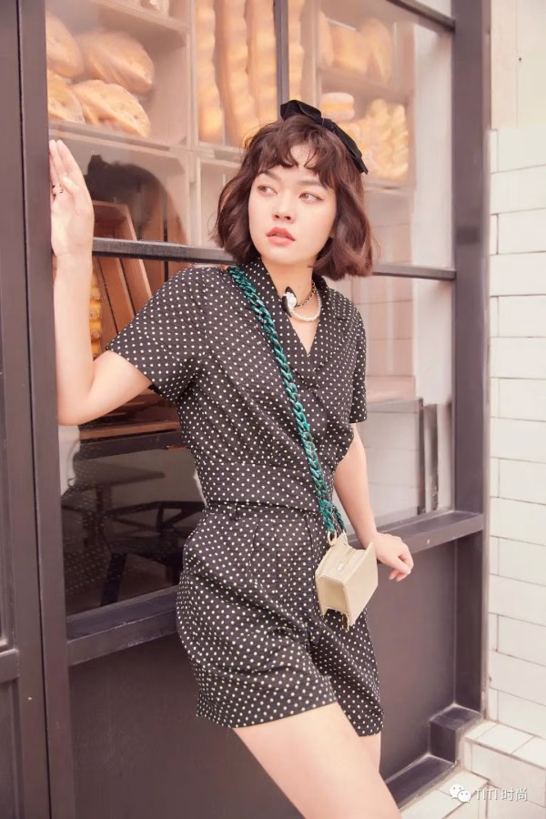 波点元素,还时常给人可爱的感觉。搭配V领、方领或裤装,也不会显得过分性感,反倒会让人觉得减龄又俏皮。高腰款式的设计,对于小个子女生或高挑妹纸都能很好驾驭。