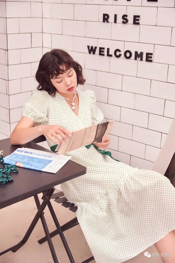 若觉得黑白波点过于单调,一袭清爽草本系波点连衣裙,给你带来满满浪漫清新感。让你彷佛置身于南法街头, 最适合度假旅游时穿,拍照也是分分钟大片。