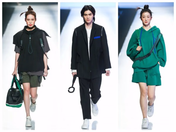 整个系列的设计元素从撞色明线延展到线性金属感烫画,再到线条感织带辅料的应用贯穿三个系列。主题色则以电篮与翠绿来诠释于新旧交汇的生态和社会系统中打破边界线构建新的愿景和价值体系,各种跨界合作成为打破固有IP的新常态,人们也不再纠结于各个领域的界线,并接受现实的生活与环境的各领域跨界线的设计。