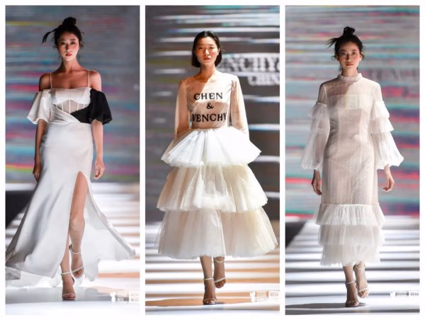 本次发布会,“無边線”系列的设计灵感源于从服装缺失中寻找突破,从缺失中重组,不规则的版型剪裁,解构衣服本身的因有形悉,赋予设计产品全新的形态。从线性元素上延展,结合线性装饰极具现代感受的美学设计,打破常规传统服装结构。
