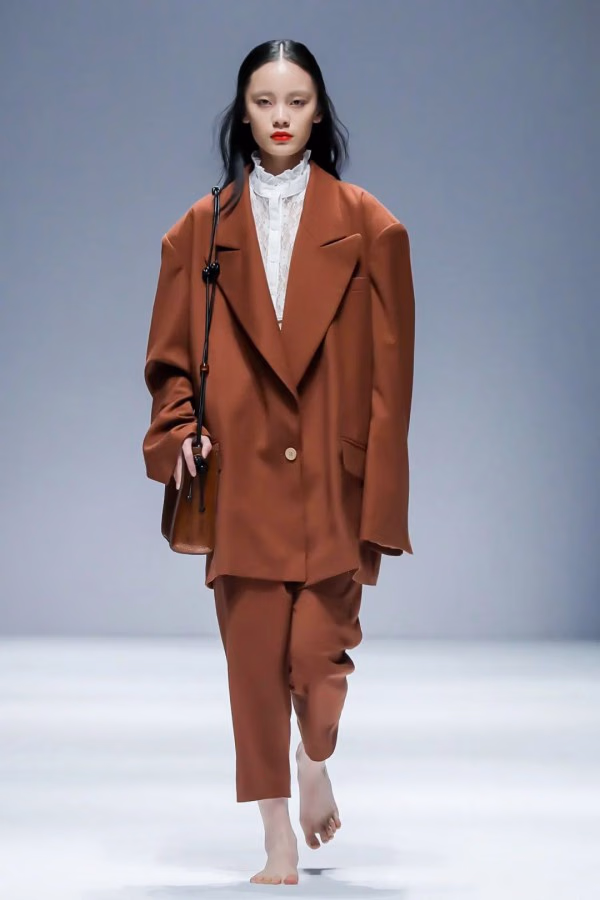 MoHanYun 2021秋冬系列设计复刻了中国70年代的时代特性,自然流畅,细节处又隐藏多重与时代相吻合的“小心机”。服饰应用到西装廓形,宽松中彰显舒适度,呈现出天然质朴又雅致干练的感觉。
