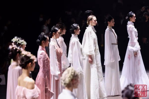 本季设计延续品牌基调,将中式美学意境与西式时尚剪裁完美融合,兼具传统与现代,承载国风文化,向世人传递着中国风的魅力与风采。设计师希望通过服装所承载的文化内涵,表述对自然、和平、安定的向往。