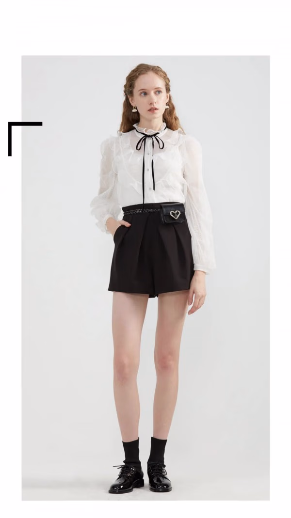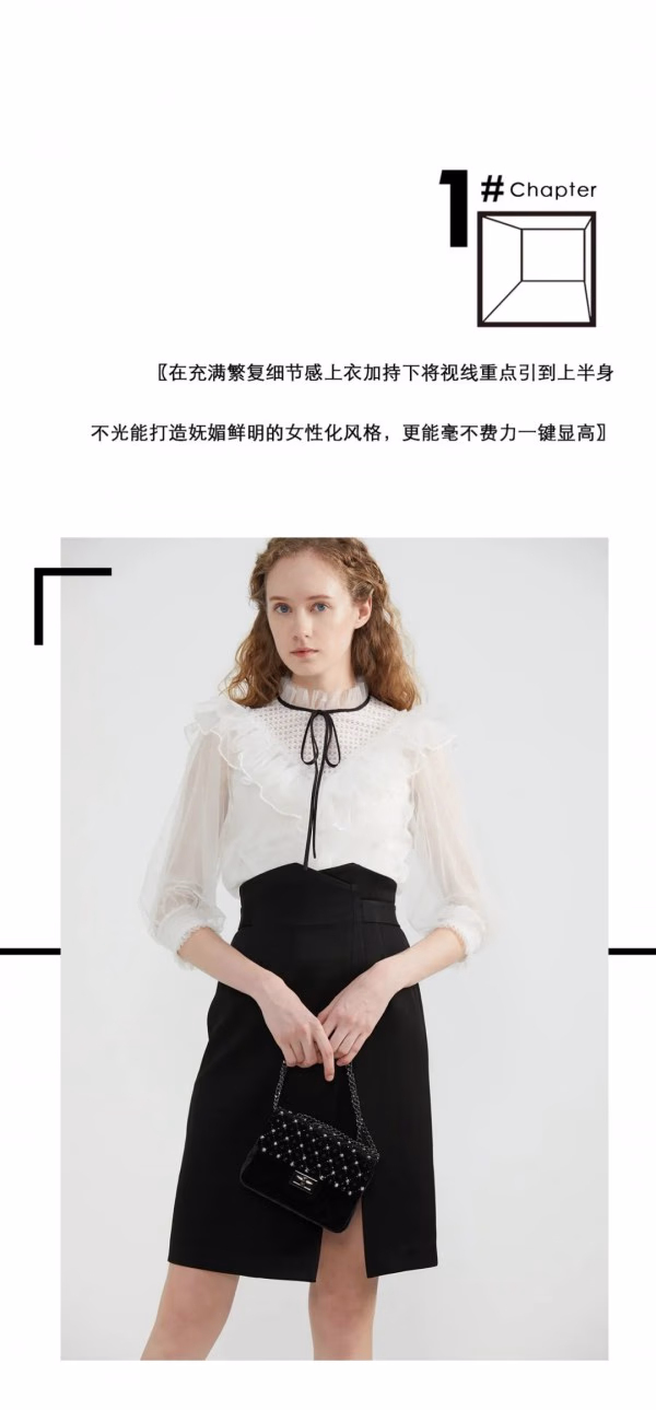 在充满繁复细节感_上衣加持下将视线重点引到上半身,不光能打造妩媚鲜明的女性化风格,更能毫不费力一键显高。