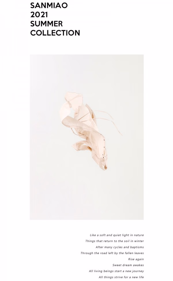 SANMIAO丨二〇二一「夏季新品」预览宛如柔和宁静的光弥散在大自然中冬季里回归土壤的事物历经多次的循环和洗礼经过那条落叶留下的道路重新升腾而起香甜的梦已醒一切生灵开始了新的征程万物努力获得新生SANMIAO 丨 二〇二一「夏季新品」预览女性|mgsrchttpsom宁静大自然4ddc
