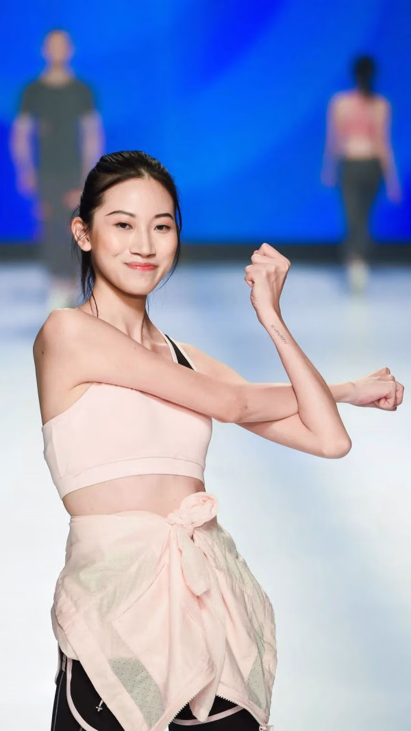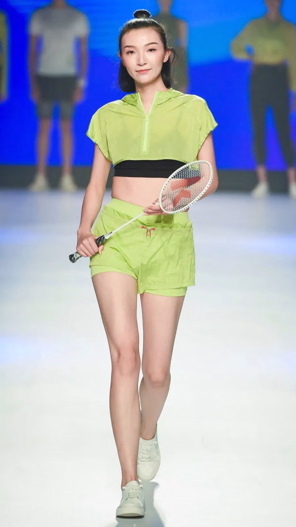 贯穿发布秀场的网球、球拍、发带以及金属色slogan标语,营造活力四射的动感氛围。强对比的明色走线和色块拼接,营造浓郁运动复古,3D裁剪的超强包覆性立体塑形,密度高弹材质与透视网纱对撞出视觉差和层次感。