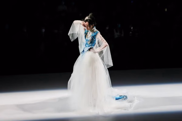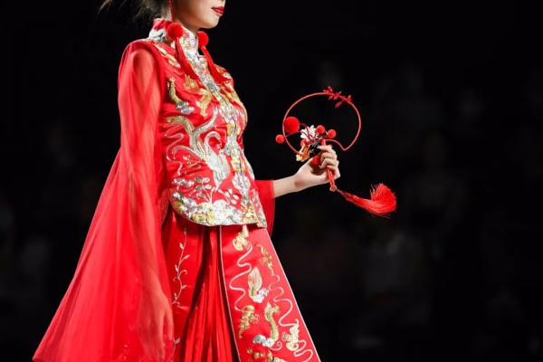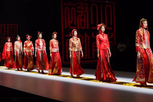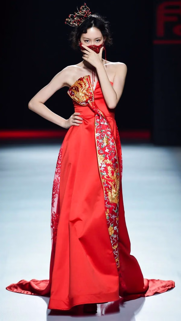 小茹献上了一场别开生面的钉金绣裙褂大秀,她还把非遗“嫁”给了时尚。