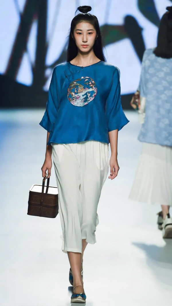 发布大秀上,区分性地佐以运动鞋、造型腰封、编织手包等“时装搭子”完善不同造型的风格,让“针尖上的传统刺绣”得以在日常、晚宴、休闲、职场等全生活场景中得到广泛运用。