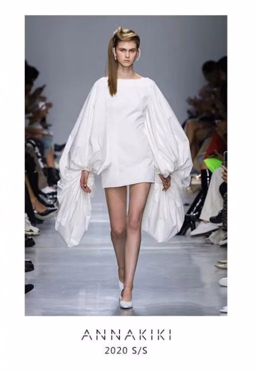 宁静首场演出的服装出自ANNAKIKI 2020年春夏的走秀款,一席白色简约连衣短裙配上华丽而夸张的泡泡袖充分彰显了宁静女王的气场。
