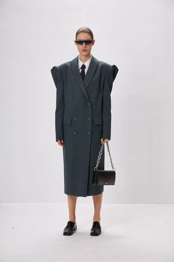 DAMOWANG, 设计师大墨(韩磊)与ALEX.WANG在深圳创立的品牌。其设计调性从“新古典主义”出发,从简单到复杂、从整体到局部,精雕细琢。以大面积的高饱和度色彩、宽大的廓形和轻盈的材质强调复古感,刻画出时代的痕迹。