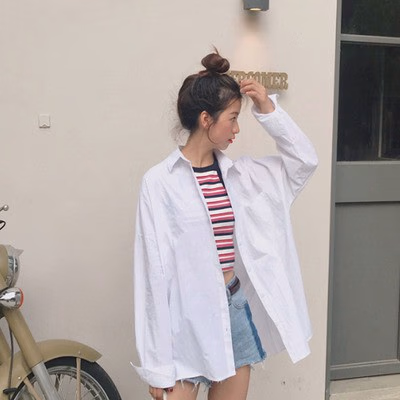 白色的衬衫穿上很是好看,也很有文艺气质,如果想让腿显得更长更瘦,可以在下身的短款牛仔裤上搭配一条腰带,并且内搭短款的T恤,能够更好地凸显出小蛮腰。这种下衣失踪的穿法,很多时尚达人都为它疯狂的打call!