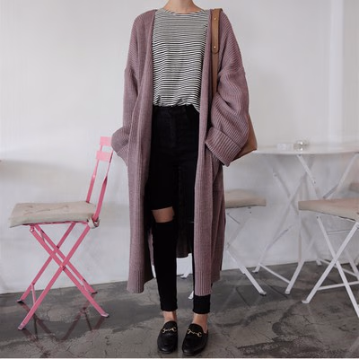 长款的针织开衫一直是秀场上的宠儿,对比例超好的超模们来说,一件简单的针织外套不仅是春秋的百搭单品,也是街拍时的时髦利器。各位在选择长款针织开衫的时候,千万要记住内搭可以尽量简单,但是一定要高腰!内搭提升腰线之后,就算开衫很长也不会压个子啦。