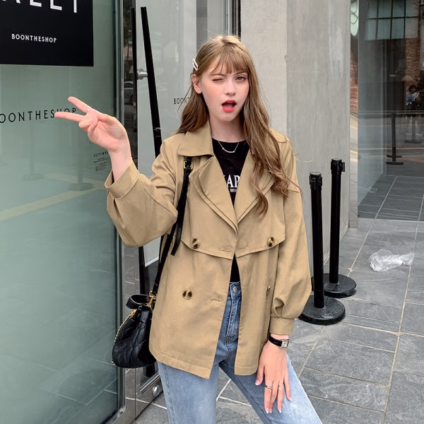 短款风衣的长度一般在55~70cm之间,看起来也不过是刚刚盖过臀部。很多小个子可能都存在一个误区:上衣不能选选长款,会“压垮”了身高,所以选风衣的时候也会买短款,觉得比长款更适合自己,但实际上...短款风衣的显高,只适合瘦子们!因为风衣的廓形不小,所以想有腰线就必须“收腰”,只有能“收”的腰才会显得你腿长,像那种没腰的苹果型小个子,穿上短款风衣只会显胖。