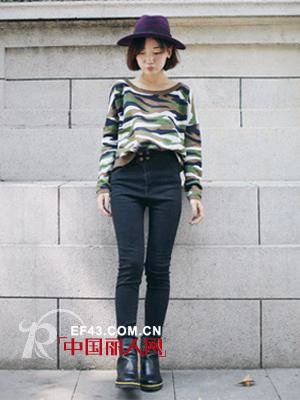 迷彩色的套头毛衣,露出性感的锁骨,也能小小的性感一会,搭配上黑色的铅笔小脚裤+黑色的中筒靴,令个性的调调发挥的恰到好处。如此简单帅气的搭配,也不需要繁琐的配饰,就能帅气迷人。这样的搭配你可学会了吗?