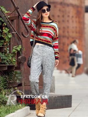短款的几何图案的毛衣,搭配上烟灰色的休闲裤,拉长比例,更显高挑。再简单的搭配上一双休闲鞋,一副黑色墨镜,一顶黑色礼帽,让几何复古图案的毛衣,再次提升视觉,个性时髦更出彩!