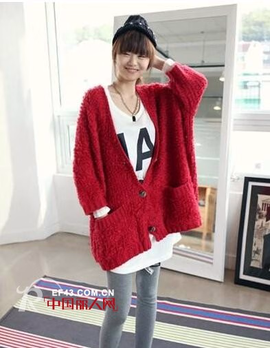 抢眼的红色毛衣,宽松蝙蝠衫的版型,很有慵懒感,又非常的百搭显瘦,而且长款的的设计,正好符合胖胖女生们的显瘦需求,只要简单的搭配上白色长款印花T恤,下身穿紧身的铅笔裤或是灰色的打底裤,一双黑色的短靴,就非常的养眼了,非常时尚懒懒的女生穿着哦!