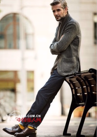 避免老气的另外一种方便的搭配方法,就是不要将内里搭配的衬衫扣紧,而是选择将衬衫的前2~3粒扣子不扣,这种搭配除了感觉比较年轻之外,还有一种雅痞的感觉。