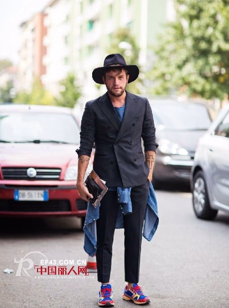 即使选择的是比较深色的西装也不要紧,只要你在搭配上注意细节的把握,比如配球鞋、腰间绑衫,搭个俏皮的小领结,或者随意穿个内里的衬衫甚至是Polo衫都可以,这些小细节,都可以让你chok起来!