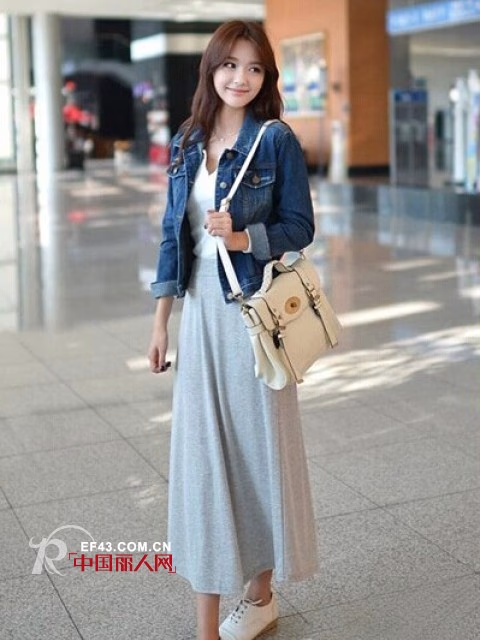 秋天的到来,穿着长裙,配搭上牛仔外套外套,帅气与唯美结合,深受时尚美眉们的喜爱。今天就为大家介绍几式牛仔外套+长裙搭配术,一起来看看韩国达人的搭配示范吧!
