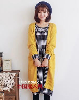 姜黄色的长款毛衣,在这冷秋穿毛衣正是时候,不会太冷也不会热。穿在身上落落大方,很有质感,搭配上黑白条纹的连衣裙,复古文艺很有森女小清新的味道,在这个浪漫的秋季里,这样的搭配出门想不抢眼都难哦!