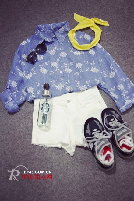 怎么做一个潮流女孩那就看看这个搭配吧,一件俗话衬衫,牛仔蓝的颜色配上白色短裤,立马显腿长,配上一双运动鞋,这么休闲的装扮适合任何的场合,配上一双条纹红袜子绝对很赞。