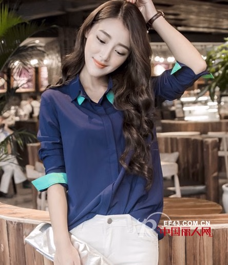 这样的深蓝色t恤衫,立领的设计,蓝绿色的袖子点缀,很是注重细节。舒适的质地,整体的身形十分的流畅。搭配着白色的高腰裤,文艺清新的感觉十分的养眼。不管是卷发还是直发都很气质呢。